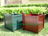 Planter boxes are made of solid pine or fir, primed and painted. They are available with